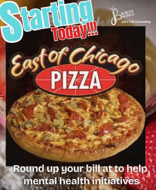 When you dine at East of Chicago Pizza, you can round up your total at checkout to donate directly to Broken Wings—and help provide mental health care to people who can’t afford it.